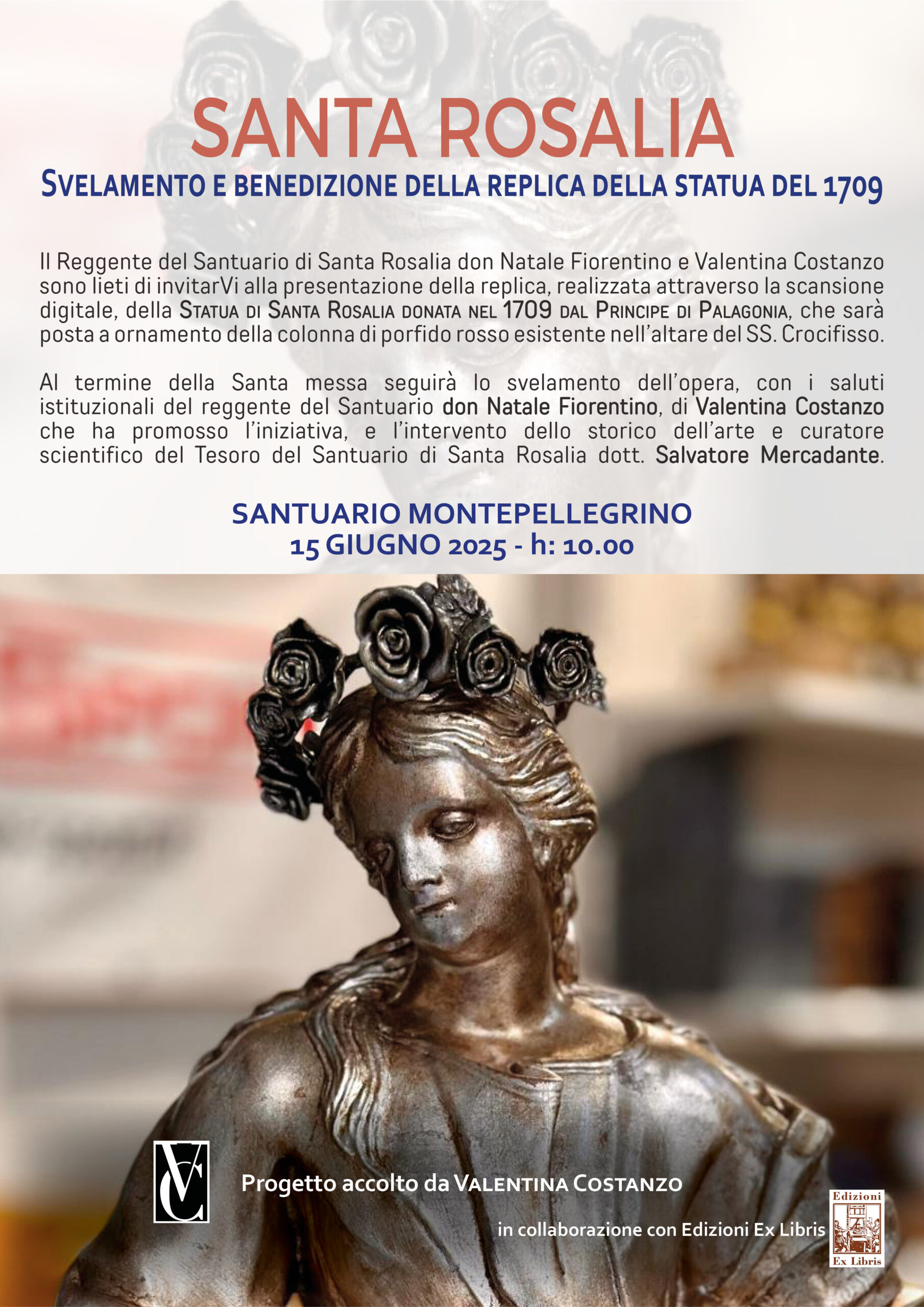 Ad accogliere i visitatori vi saranno il Reggente del Santuario don Natale Fiorentino e Valentina Costanzo, che presenteranno ufficialmente la replica, realizzata attraverso la scansione digitale, della statua raffigurante Santa Rosalia, consegnata nel 1709 dal Principe di Palagonia.
