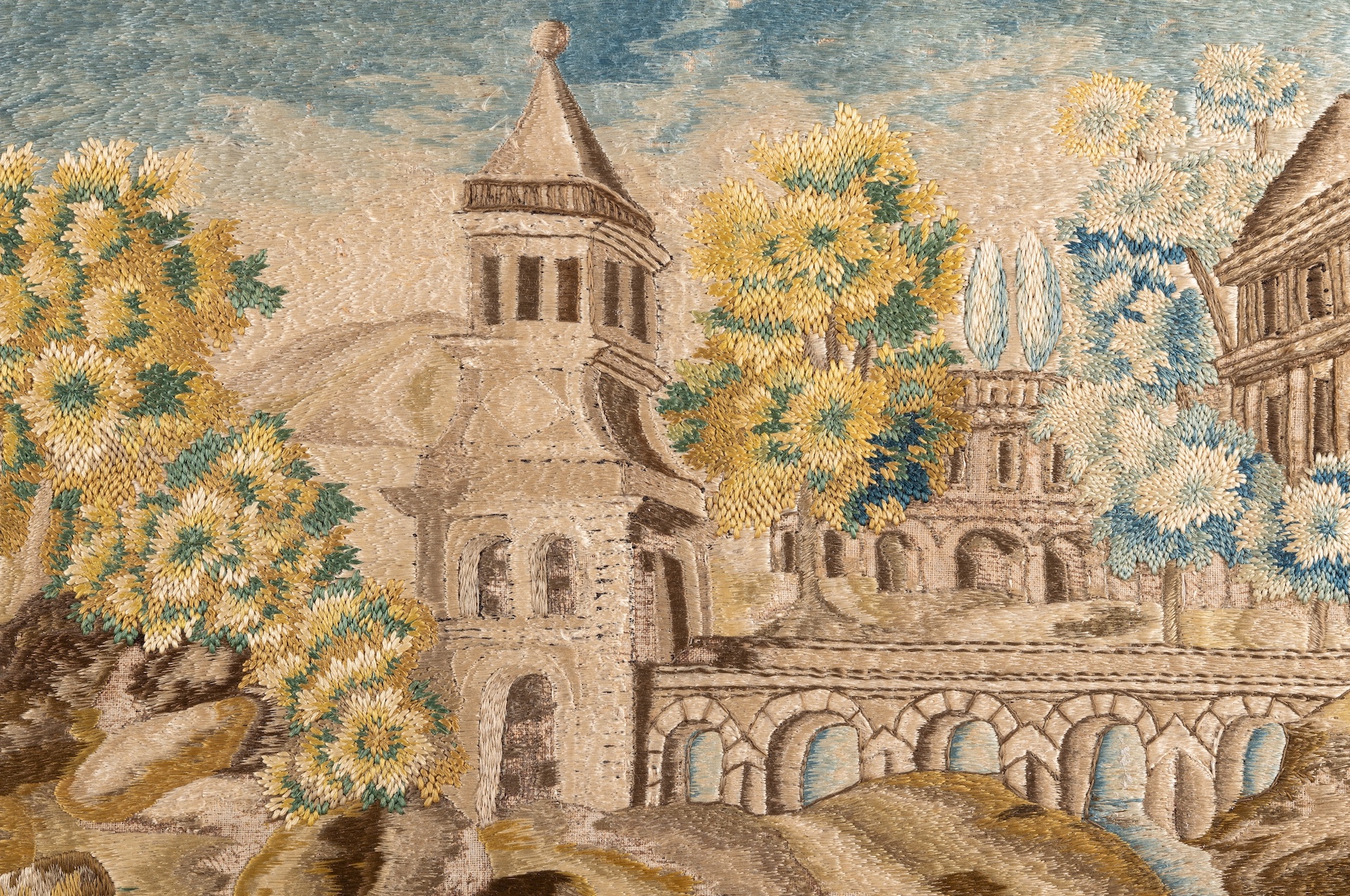 E ancora, il drappo ricamato con Coriolano che respinge la richiesta di pace del Museo Civico “Baldassarre Romano” di Termini Imerese realizzato su cartoni del pittore Vincenzo La Barbera e, a Palermo, il paliotto in corallo proveniente dal Tesoro della Cattedrale, le cortine a decori fitomorfi e floreali di Villa Niscemi, le raffinate composizioni in ago pittura della Fondazione “Giuseppe Whitaker” di Villa Malfitano e i suggestivi paramenti con paesaggi del Museo Diocesano di Monreale.