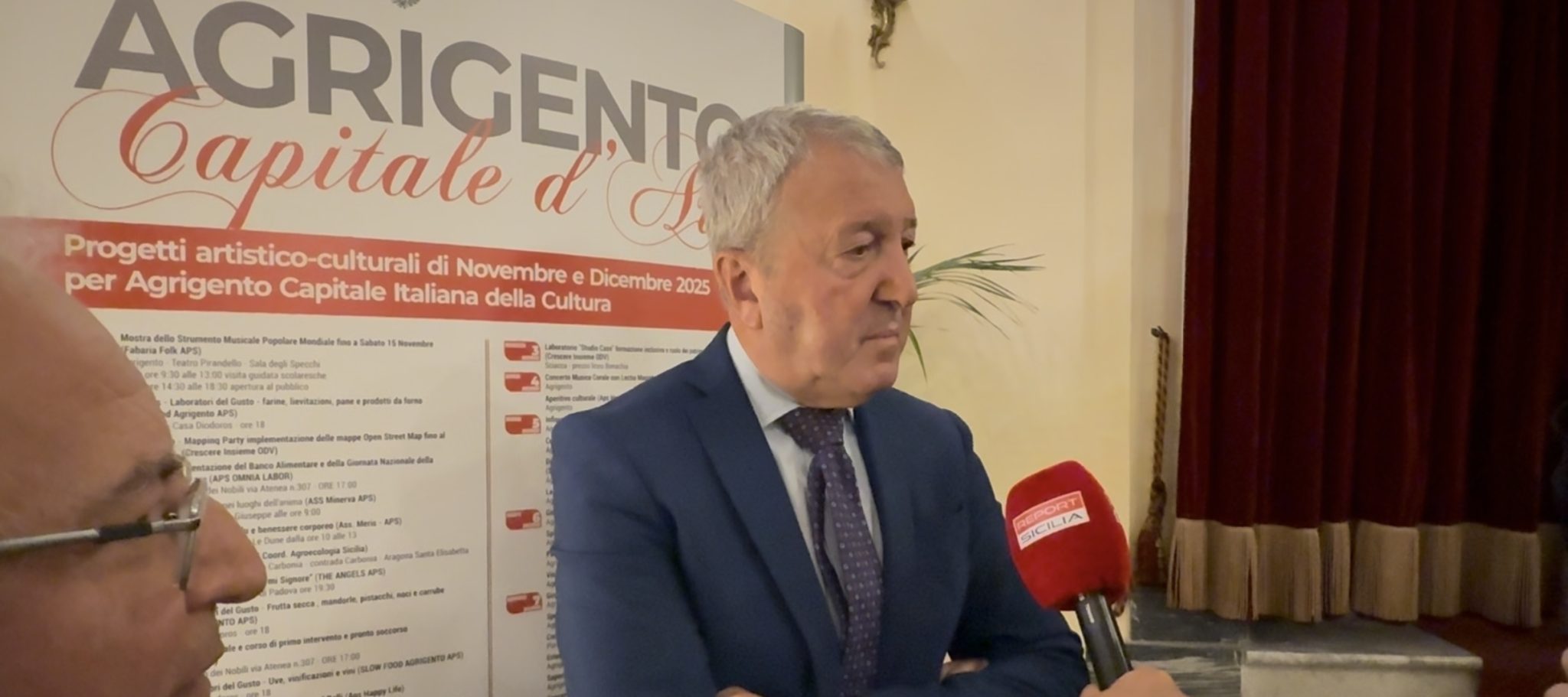 Alla presentazione del cartellone degli eventi di novembre e dicembre 2025, il sindaco di Agrigento, Francesco Miccichè, si mostra entusiasta.