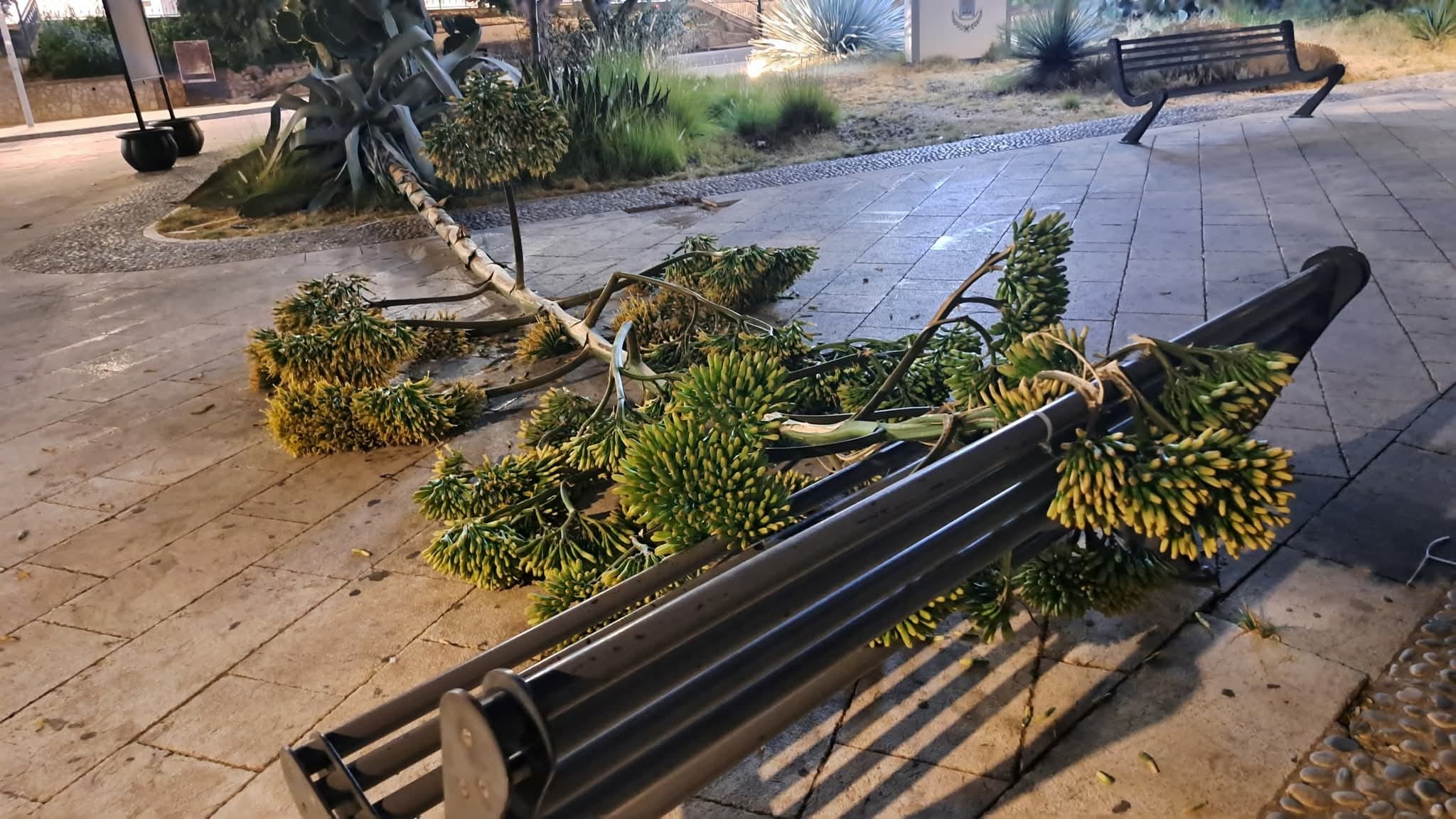 In Piazza Stazione ad Agrigento crolla un alto stelo fiorale di agave americana su una panchina pubblica. Nessun ferito, ma è polemica sulla manutenzione del verde. E se ci fosse stato qualcuno seduto?