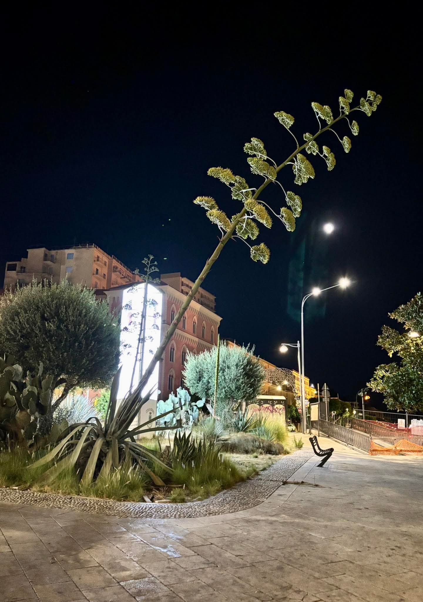 L’agave americana è una pianta ornamentale comunemente usata nell’arredo urbano, ma la sua fioritura – che avviene una sola volta nella vita della pianta – genera un fusto centrale che può superare i sei metri di altezza. Una volta terminato il ciclo vitale, la struttura si indebolisce, diventando instabile e potenzialmente pericolosa se non rimossa in tempo.