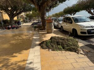 Se da un lato la presenza degli operai ha permesso di rimuovere erbacce e sterpaglie, dall’altro il lavoro è rimasto incompleto: i rifiuti e i detriti tagliati non sono stati raccolti, ma lasciati sul posto, esposti alle raffiche di vento che già stanno iniziando a disperderli nuovamente lungo il viale.