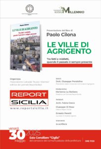 AGRIGENTO – Sarà presentato venerdì 30 maggio 2025, alle ore 17:30 presso la Sala Consiliare “Giglia” del Palazzo della Prefettura, il libro di Paolo Cilona dal titolo “Le Ville di Agrigento – Tra fatti e misfatti, quando il passato è sempre presente”. L’evento, a ingresso libero fino a esaurimento posti, è promosso dal CE.P.A.S. e dall’Associazione Culturale “Nuovo Millennio”, editrice del giornale Report Sicilia.