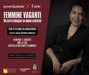 “Femmine Vaganti – Bizzarra indagine su donne esistenti” e “I Fiori Blues” sono i titoli dei due spettacoli teatrali rispettivamente in programma nei venerdì di 1 e 8 agosto al Castello dei Conti di Modica ad Alcamo, in provincia di Trapani.