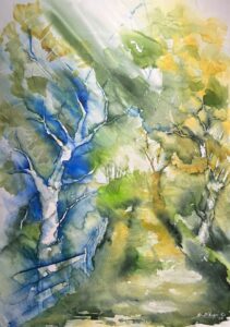 “I paesaggi – evidenzia Sabrina Di Gesaro – si trasformano in atmosfere suggestive e altamente evocative, grazie a tonalità che si intrecciano in delicate sfumature”.