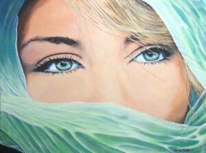 Carla Gallo, da Torino, è un’artista dalla cifra stilistica lirica ed intensa, che con l’opera “Dietro il velo” presenta una visione sospesa tra percezione e introspezione.