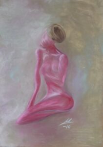 L’artista imprime sulla tela un’eleganza silenziosa e toccante dove ogni dettaglio narra la storia di una femminilità riservata e potente.
