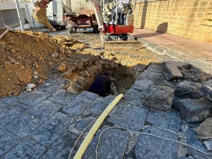 La via Acrone, nel tratto iniziale su piazza Stazione, si conferma teatro di una vicenda tragicomica. La zona recentemente oggetto di un intervento di “consolidamento” del terreno, a seguito del movimento franoso che ha devastato gli immobili della zona, in primis la Sala Bingo chiusa da mesi perchè resa inagibile, è stata richiusa alcuni giorni orsono. Operai di un’azienda che – pare – sia stata inviata da Aica stanno ultimando la riparazione di una grossa perdita lungo la fatiscente condotta che scorre sotto il lastroni di pietra lavica. Una scena grottesca, non per il lavoro svolto dagli operai che stanno cercando di fare alla svelta e bene, quanto per la pervicacia con la quale questa zona della città dei Templi venga tenuta in condizioni decisamente precarie. Basti pensare a quante volte sia stata chiusa e riaperta questa area della via Acrone anche a dispetto dell’evidente e inarrestabile movimento franoso che la interessa.