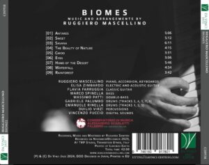 Uscito nel 2024, disponibile presso tutte le piattaforme digitali, l’album, quarantadue minuti, si compone di nove tracce ed evoca i biomi della Terra: tundra, foresta pluviale, deserto e savana.