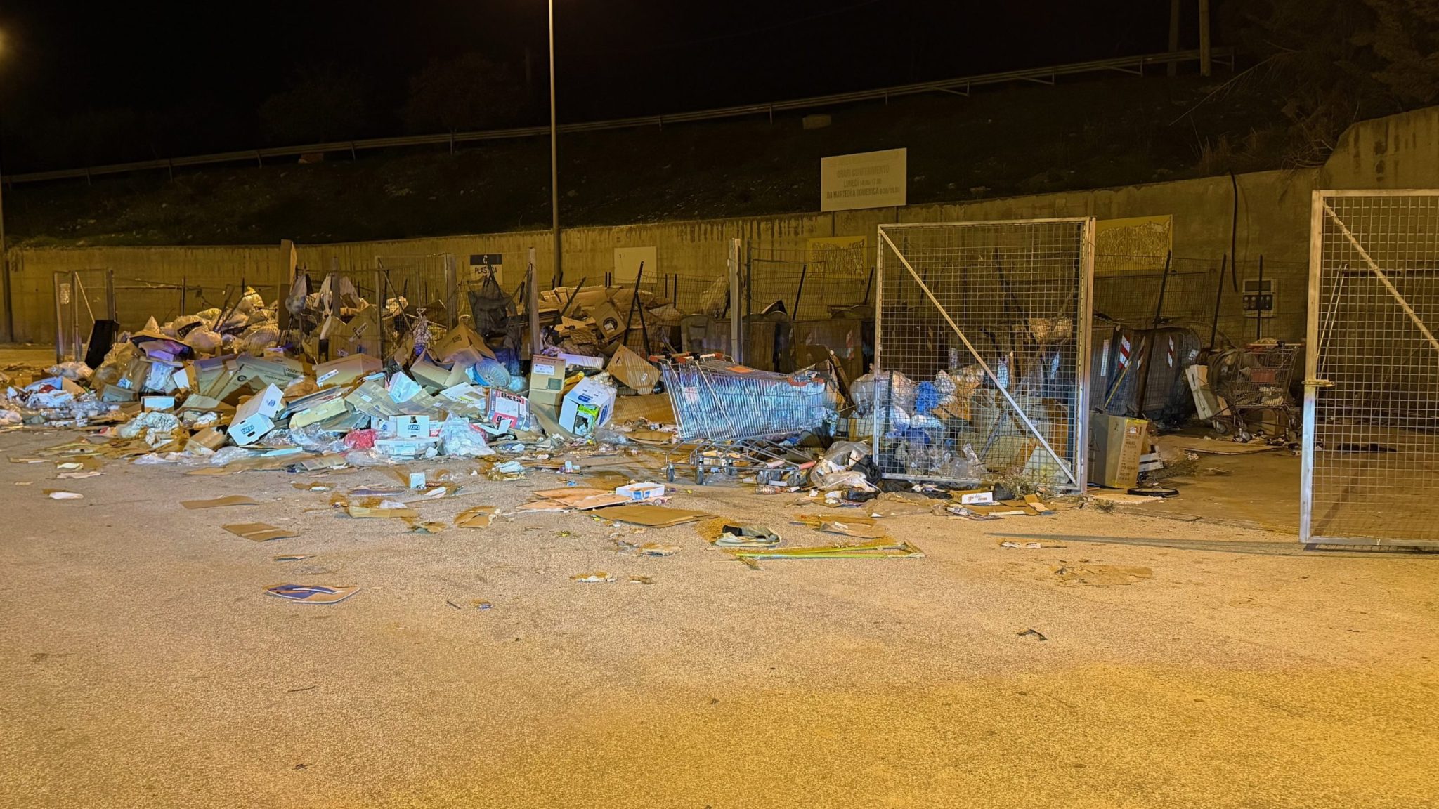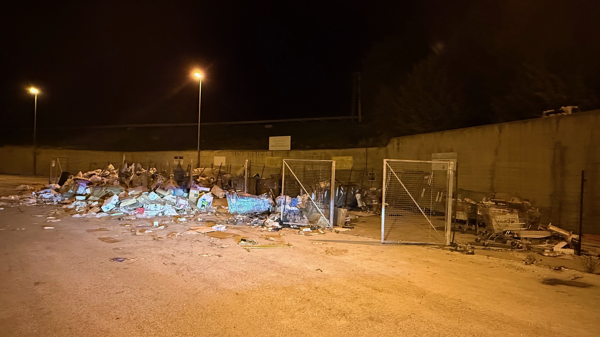 Ma ciò che più colpisce – e indigna – è la condizione delle aree esterne adibite allo stoccaggio dei rifiuti. Montagne di cartoni, plastica, pallet, scarti di ogni tipo abbandonati senza alcun criterio, depositati all’aperto, senza copertura né controllo. Un quadro che oltre ad essere uno spettacolo indecoroso, solleva seri dubbi sul rispetto delle norme sanitarie, ambientali e di sicurezza antincendio.