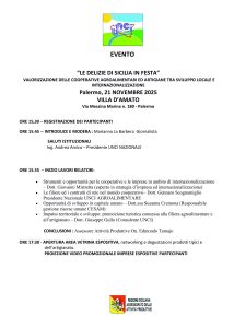 “Le delizie di Sicilia in festa”: è il titolo dell’evento organizzato e promosso dall’UNCI Sicilia con l’obiettivo di valorizzare le cooperative agroalimentari e artigiane, tra sviluppo locale e internalizzazione.