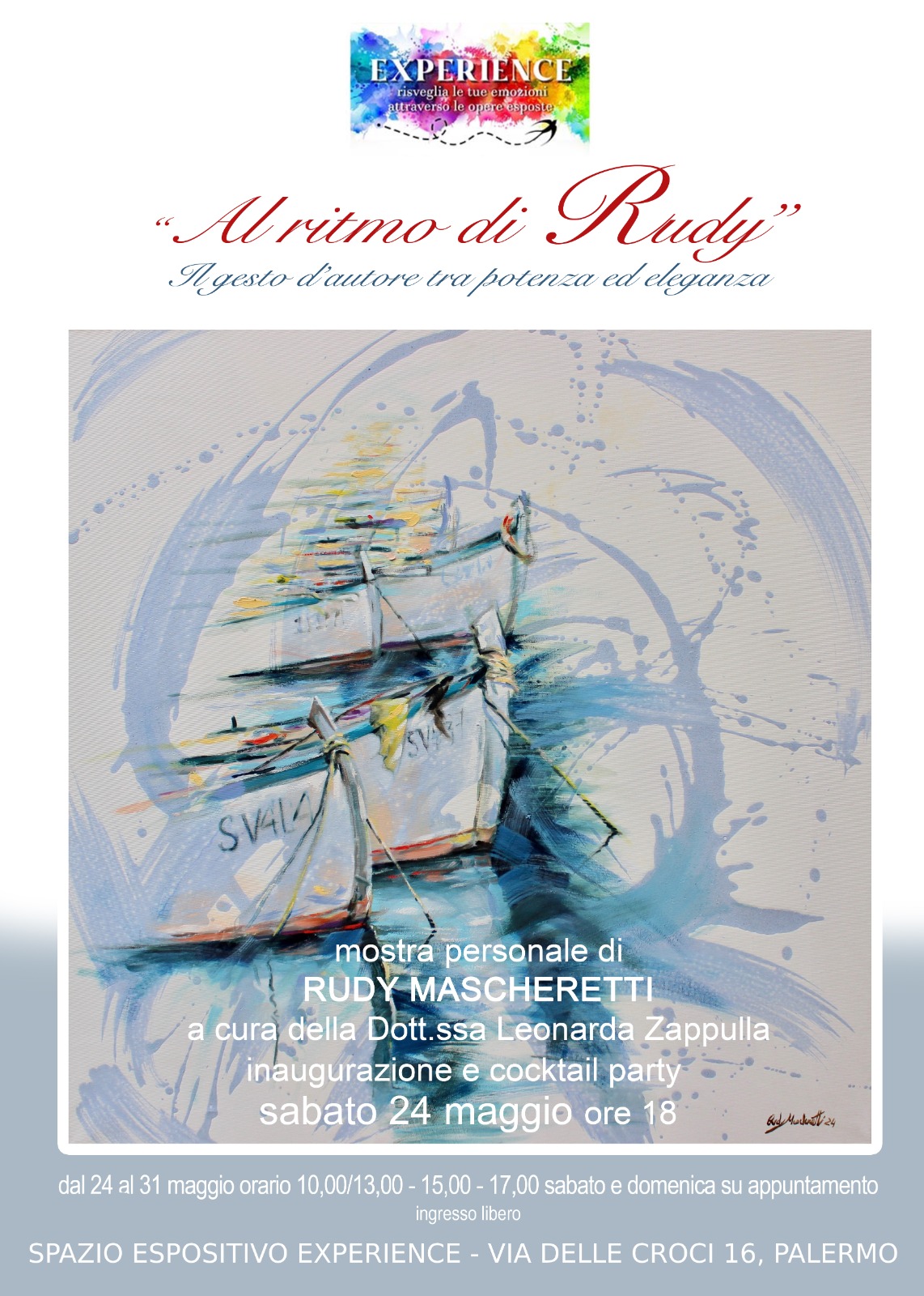 “Al ritmo di Rudy” è il titolo della mostra, a cura dello storico e critico d’arte Leonarda Zappulla, in programma a Palermo negli spazi espositivi di “Experience”, in via delle Croci 16 dal 24 al 31 maggio.