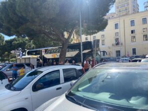 Scandaloso pomeriggio di follia davanti la Questura di Agrigento, tra la via Cicerone e il piazzale Vittorio Emanuele, dinanzi al “fu” cinema Astor. A consumarsi è stato l’ennesimo delirio collettivo nel “terminal” abusivo degli autobus, tollerato da anni dalle istituzioni preposte, nella totale mancanza di servizi e sicurezza pubblica. Intorno alle 16 si sono ritrovati almeno 4 autobus giunti per trasportare coloro i quali avrebbero dovuto lasciare Agrigento dopo le giornate di festa. Decine e decine di persone con bagagli al seguito, decine di auto intente a parcheggiare dove capitava, ma soprattutto quei 4 autobus i cui conducenti hanno dovuto sistemare alla meno peggio, in attesa di far salire a bordo i passeggeri. Una vergogna, una indecenza per una città che ambisce a essere punto di riferimento del turismo, specie in questo anno che la vede Capitale italiana della Cultura. La colpa non è ovviamente degli autisti o delle compagnie di linea, ma di chi autorizza questo scempio, non potendo contare sulla vicina “vera” stazione per gli autobus in piazzale Rosselli dove però, gli autobus grandi non possono manovrare.