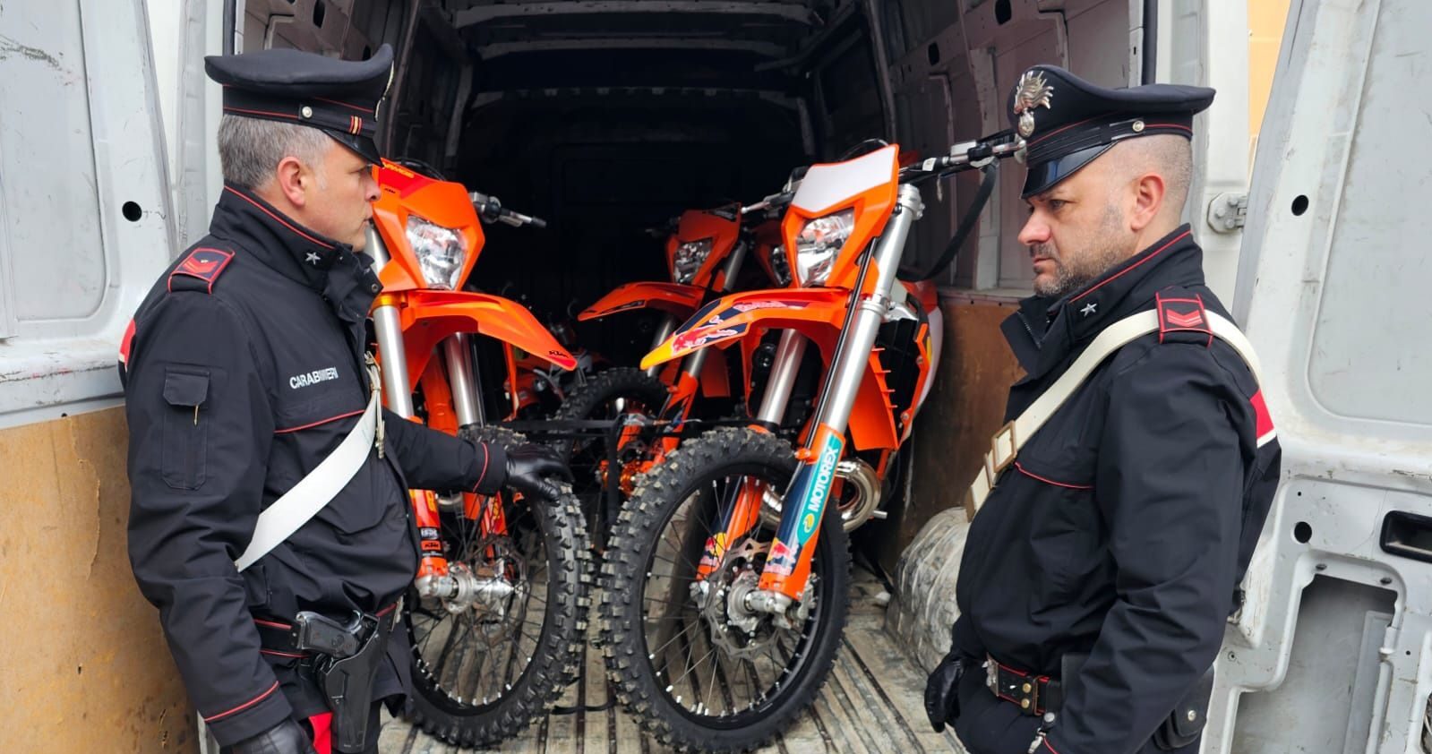 L’intervento è scattato grazie a una segnalazione al 112, che ha allertato immediatamente le pattuglie in servizio. Gli autori del furto, dopo aver forzato il cancello e la porta d’ingresso, hanno caricato i motocicli su un furgone e si sono dati alla fuga.