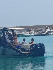 Al porto, Ghali ha subito attirato l’attenzione dei presenti. Alcuni diportisti non hanno perso l’occasione per scattare foto e registrare video, immortalando il rapper in compagnia di amici, mentre si rilassava a bordo di un elegante motoscafo ormeggiato tra le altre imbarcazioni.