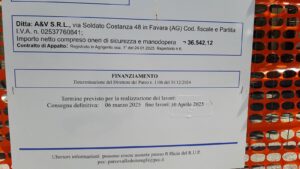 In principio fu la data di ultimazione dei lavori molto distante nel calendario, quindi ci fu la correzione con il pennarello accorciando i tempi alla fine di questo mese, adesso è la volta dell’adesivo con la data di ultimazione esatta dei lavori. Continua l’adeguamento “a tappe” del cartello obbligatorio posizionato all’ingresso del cantiere per il rifacimento del chiosco di Porta di Ponte, destinato a essere l’Infopoint più strategico di Agrigento Capitale della Cultura. Una vicenda decisamente “curiosa” per il susseguirsi di sviste in un adempimento che dovrebbe essere eseguito con estrema attenzione, per non incappare in multe da parte dell’Ispettorato del lavoro (?!) o della polizia locale (!?), enti preposti ai controlli in materia di sicurezza sul lavoro. La tabella venne posizionata con ritardo, dopo l’apertura del cantiere solo dopo un articolo di Report Sicilia. Quindi, una volta posizionata la tabella, è andata in scena la pantomima delle date, culminata finalmente con la sistemazione – si spera – definitiva di tutti i dati indispensabili a legittimare il cantiere. Secondo la prima “versione” i lavori sarebbero finiti ai primi di settembre, a pochi giorni dalla fine dell’anno di Agrigento Capitale della Cultura. Troppo, anche per chi non si è accorto di avere stampato una corbelleria. Quindi ci fu la correzione col pennarello nero che però, non risolse i “guai”.  Ci fu infatti anche l’ulteriore “svista” dei 182 giorni calcolati per la consegna dei lavori, anche questa coperta solo nelle scorse ore con l’adesivo, visto che l’opera dovrebbe essere ultimata entro questo aprile.