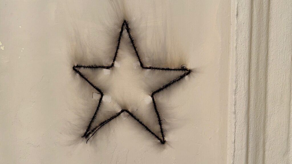 Le immagini parlano chiaro: stelle realizzate con fil di ferro e combustione, fissate e “bruciate” direttamente su intonaci e superfici in pietra. Una scelta che non solo appare discutibile sul piano estetico e culturale, ma che costituisce una vera e propria manomissione di un bene sottoposto a vincoli storici e architettonici.