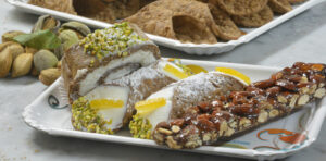 Ma il vanto della città è, soprattutto, la raffinata pasticceria: il cannolo, secondo la leggenda è nato qui, ma il vero dolce tipico è il rollò di ricotta, un soffice involucro di pan di spagna farcito con ricotta e pasta reale di pistacchio.