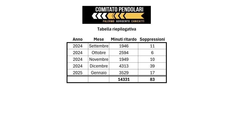 Da anni il Comitato Pendolari Palermo-Agrigento-Canicattì, presieduto da Tania Di Marco, chiede un confronto con la Regione Siciliana, in particolare con l’Assessorato alle Infrastrutture e Mobilità, per affrontare le numerose problematiche legate al servizio ferroviario. Tuttavia, l’attuale amministrazione regionale ha dimostrato totale indifferenza, interrompendo gli incontri periodici che si tenevano con il precedente governo e ignorando sistematicamente le richieste di dialogo inviate da Comitati e Associazioni ufficialmente registrati.