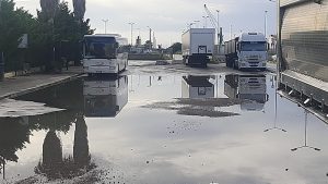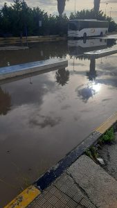 Gli autisti hanno caricato i passeggeri in maniera decisamente fortunosa, non potendo fruire degli spazi di manovra normali. Tutto allagato, come sempre, più di sempre. Tutti si chiedono: ma il Comune non fa nulla? Da anni l’amministrazione di turno non osa mettere mano alla zona, pare perchè tale area non apparterrebbe al Comune, ma all’Italkali (!) con la quale ci sarebbe un contenzioso vecchio di parecchi anni. In attesa che i rapporti tra pubblico e privato si chiariscano, decidendo finalmente di chi sia la competenza sulla manutenzione della strada, la situazione diventa sempre più vergognosa, senza che nessuno riesca a dare una svolta almeno temporanea. E’ inconcepibile che in questi anni non sia stato possibile almeno “spalmare” qualche minima quantità di bitume almeno nelle buche più profonde, evitando il formarsi di questa gigantesca piscina. La stagione delle piogge è ormai iniziata da tempo e al “terminal” degli autobus si profilano altri giorni di disagi e degrado. La gente è ormai assuefatta a tutto questo, come se tutto questo fosse ormai la normalità.