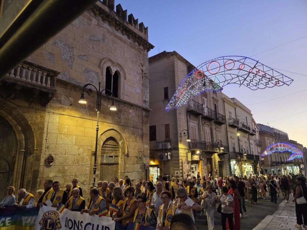 In testa al corteo il Governatore del Distretto Lions Sicilia Diego Taviano, seguito da una folla variopinta che ha colorato il cuore della città.