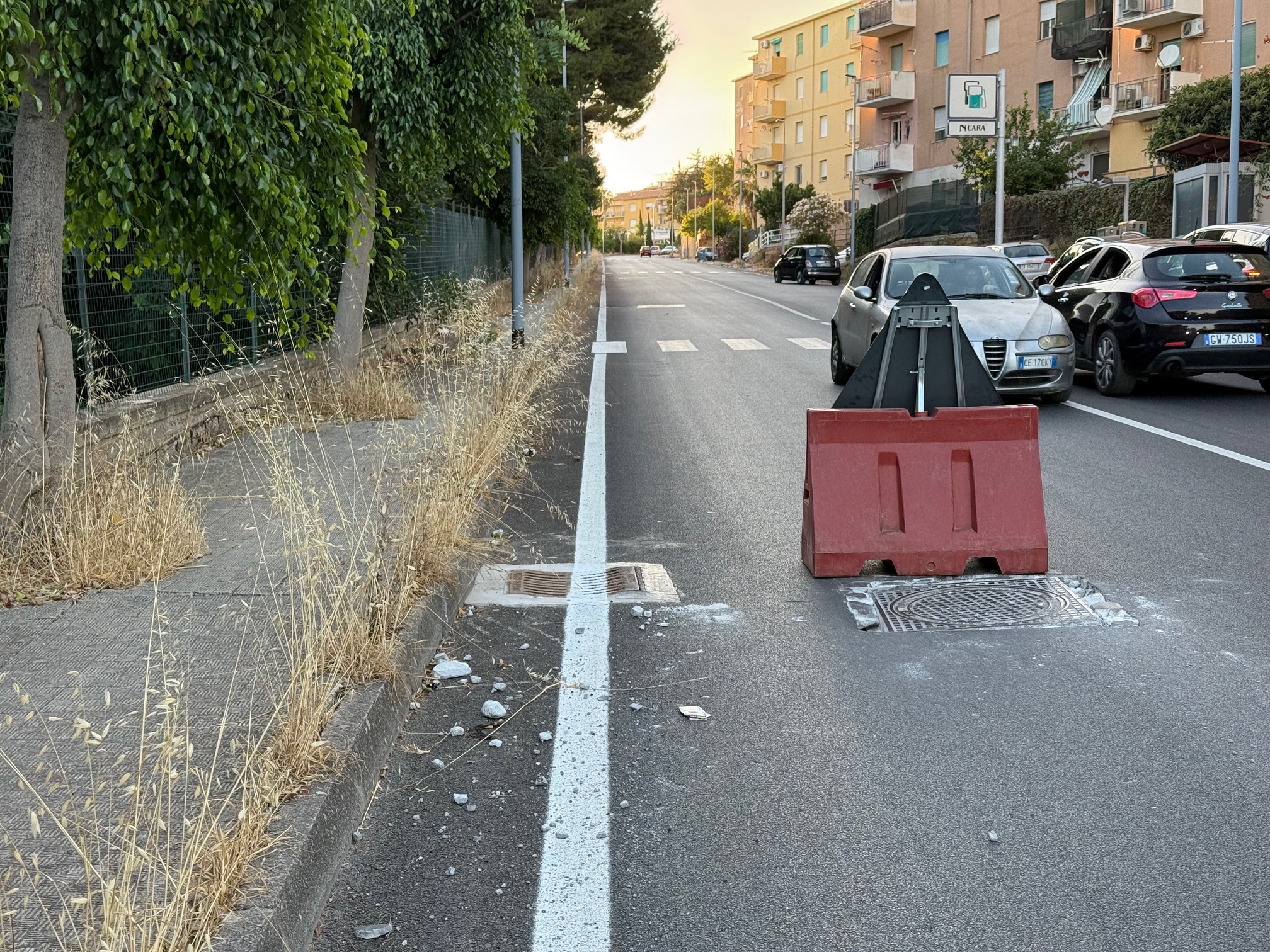 In alcuni casi, come in via Empedocle, la situazione è talmente paradossale che il passaggio pedonale è bloccato da una transenna a protezione di un tombino… all’interno delle strisce zebrate. Come si vede nella foto a corredo, alla fine il “tombino” non è stato affatto sostituito: la buca è stata semplicemente chiusa, cancellando l’alloggiamento stesso e lasciando un rattoppo di asfalto al suo posto.
