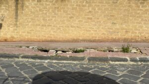 2008 – il marciapiede e la sede stradale appaiono già segnati da prime lesioni e dislivelli;