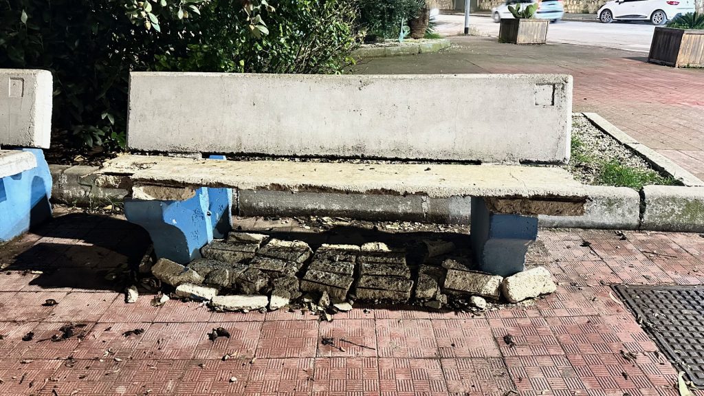 Panchine sbriciolate e marciapiedi dissestati: un pericolo per i cittadini