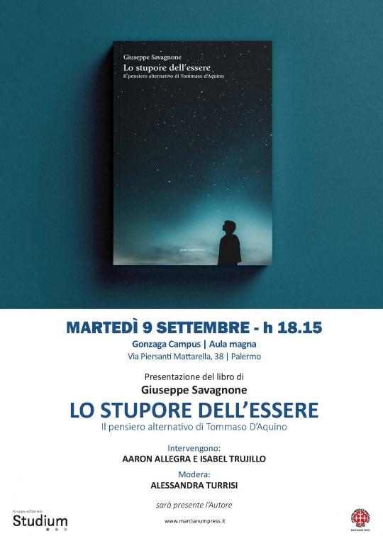 “Lo stupore dell’essere. Il pensiero alternativo di  Tommaso D’Aquino” : è il titolo del nuovo libro di Giuseppe Savagnone che sarà presentato a Palermo, nell’Aula  Magna del Gonzaga Campus in via Piersanti Mattarella 38, martedì 9 settembre alle 18:15.