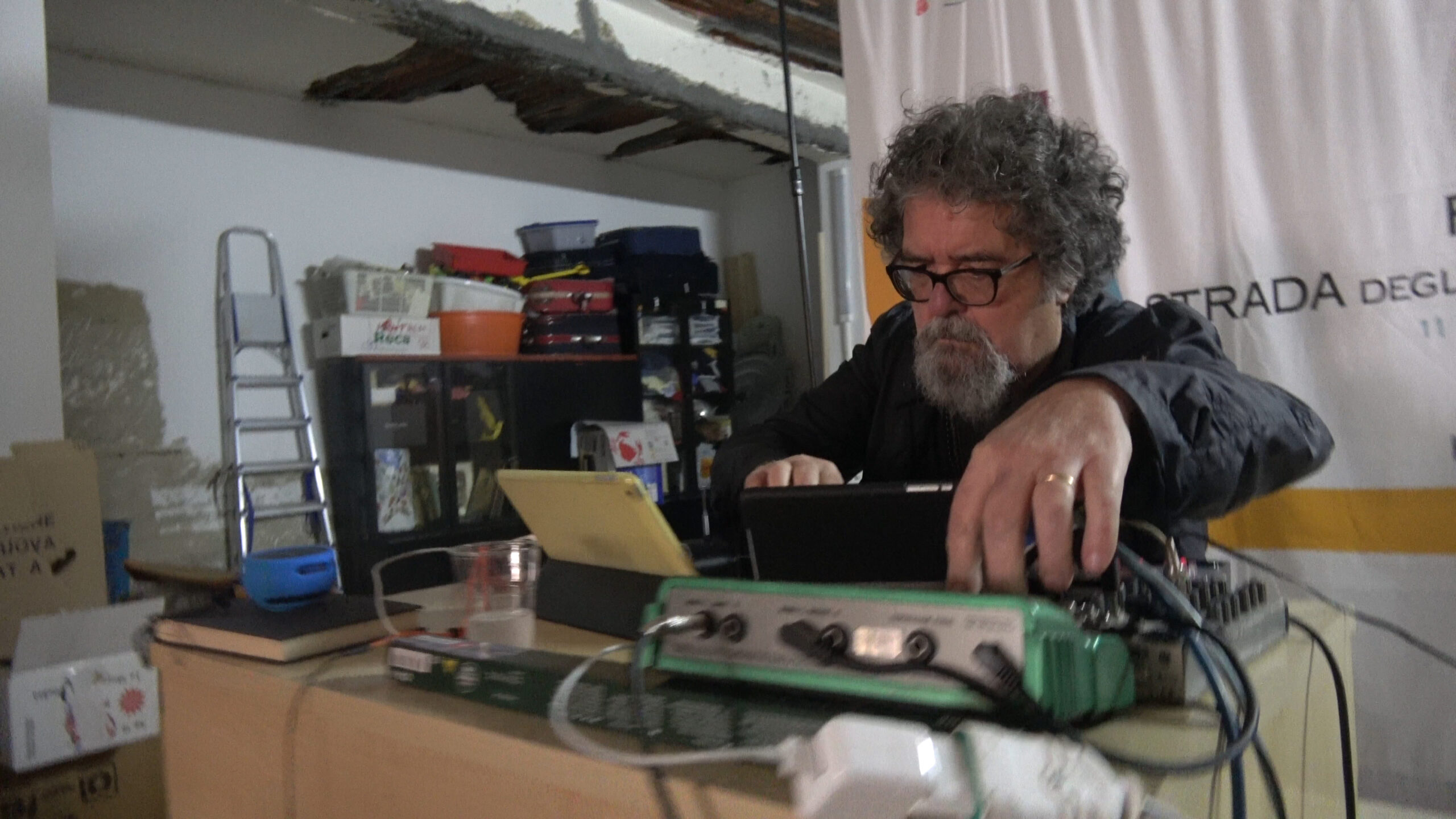 Ama Stokausen e Berio, Pasolini e Rosa Balistreri.SandroSciarratta ha dato il via stasera nel salone-ufficio di Mario Pardo ad una delle sue ricerche e sperimentazioni musicali. Messo da parte l’amato contrabbasso, il musicista agrigentino ha “armeggiato” per circa venti minuti ( o forse è meglio dire “volteggiato” ) con le sue mani su tastiere, computer, lucine multicolori , piccoli monitor, spettri luminosi, componendo una performance di suoni con interazioni tra strumenti acustici e suoni elettronici e con la prospettiva (che si è proposto) di coinvolgere “suono e parola”. Ad ascoltarlo una decina di amici ( tra gli altri l’attore Gaetano Aronica) venuti ad ascoltarlo con interesse tanto da intessere, alla fine, con lui un breve dibattito chiarificatore. Mario Pardo che ne era il mentore, provocatoriamente vuol inserire questo inedito concerto sperimentale in quello che lui chiama “il lunedì del cazzo”, una sorta di esorcismo per un evento che certamente può richiamare una ristretta cerchia di spettatori “avvertiti” e poco “deracinè” consapevoli che Sciarratta vuol mettere in relazione la musica con altri campi del sapere umanistico.