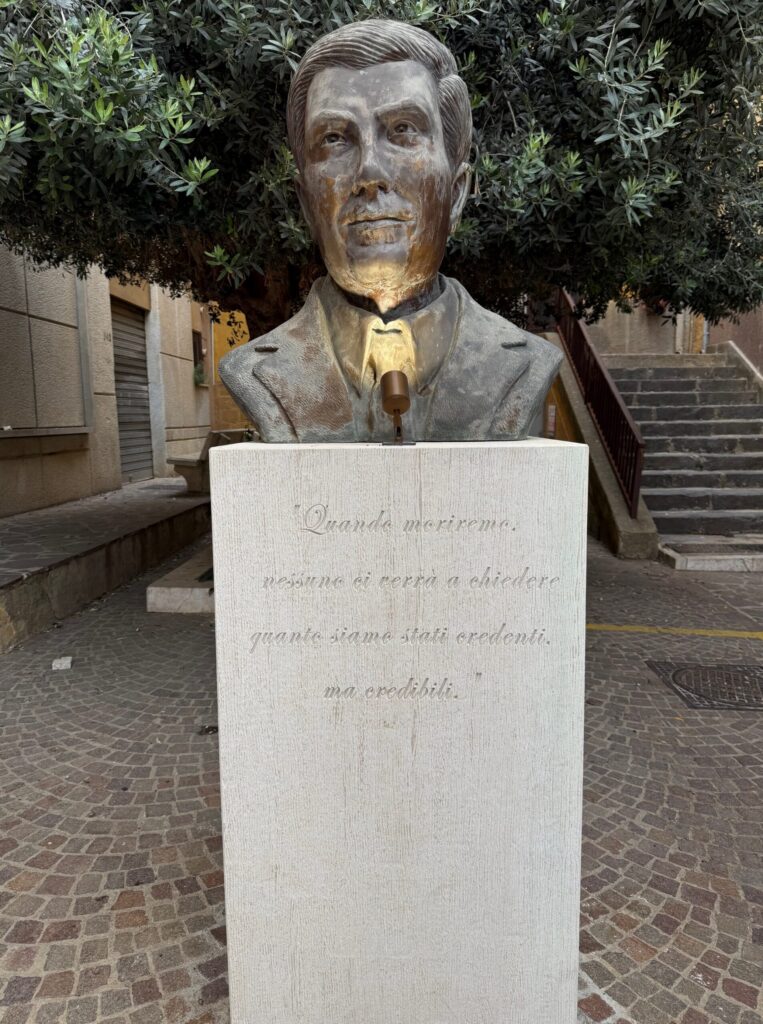A pochi giorni dall’anniversario, viene spontaneo chiedersi: è così che Agrigento intende onorare la memoria del suo Beato? Un busto che non somiglia al magistrato, logorato dal tempo, senza una targa che lo identifichi, rischia di trasformarsi in un monumento vuoto, incapace di trasmettere il messaggio e l’eredità di Livatino alle nuove generazioni e ai turisti che arrivano in città.