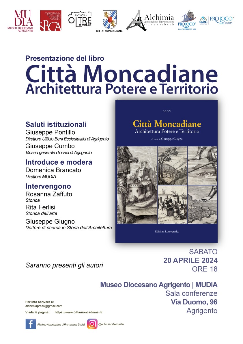 Sarà presentato, sabato 20 aprile 2024 alle ore 18.00 nel Museo Diocesano di Agrigento, il volume “Città Moncadiane. Architettura Potere e Territorio”.