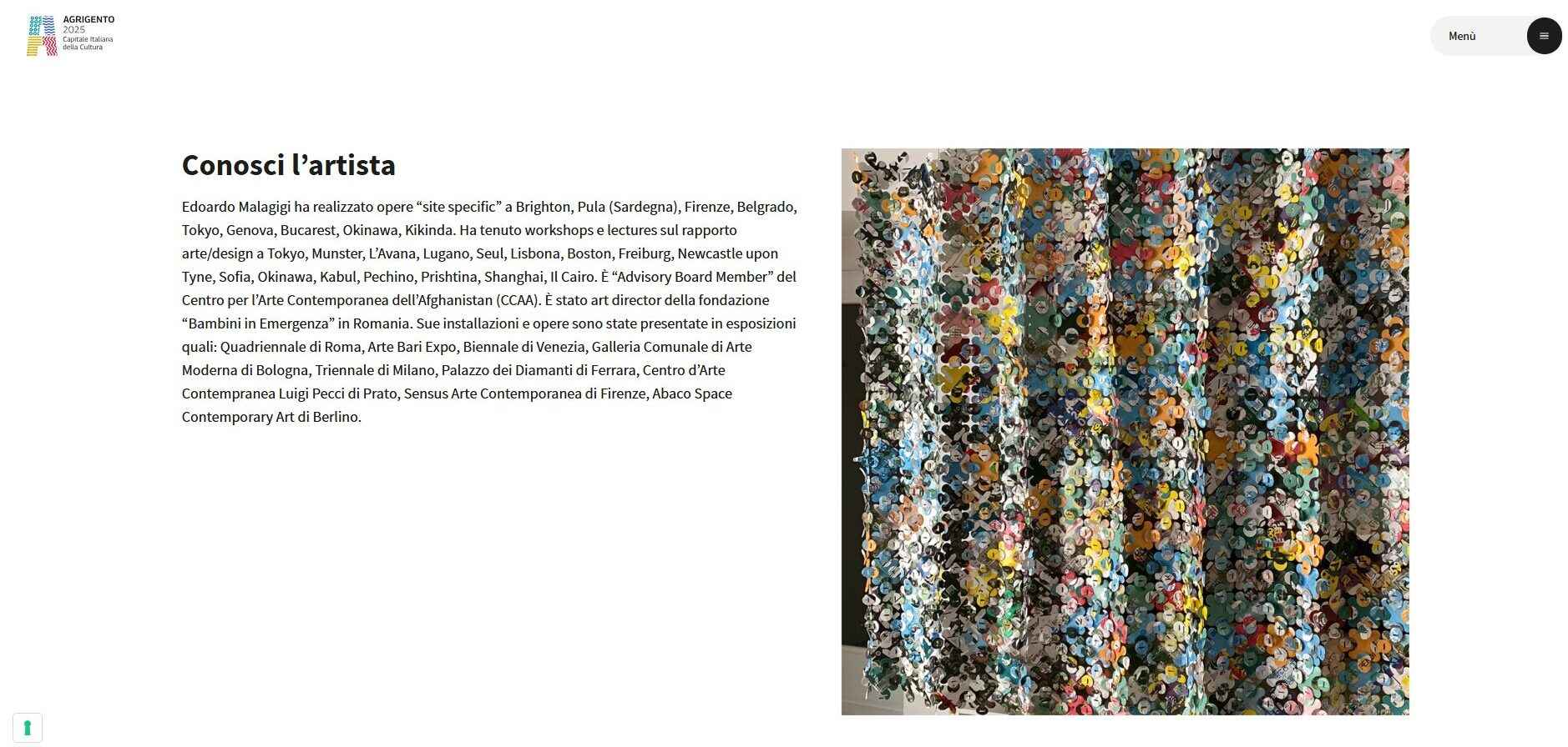 Il progetto artistico “Il rifiuto oggetto di creazione artistica” dell’artista Edoardo Malagigi, inizialmente pensato con tre installazioni in Tetrapak dislocate in vari punti strategici della cittàSito Agrigento malagigi, si riduce a due opere. L’ennesimo taglio a un programma che, secondo gli impegni assunti con il Ministero della Cultura, doveva essere realizzato per intero e nei tempi previsti.