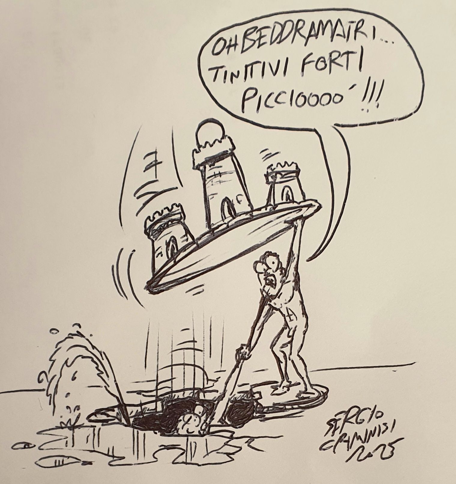 La vignetta – pungente e precisa – fotografa meglio di mille reportage la condizione della “Capitale della Cultura 2025”, che si presenta al mondo con eventi e spettacoli ma non riesce a garantire nemmeno il diritto all’acqua. Una città in cui le priorità si rovesciano, come la stessa piattaforma su cui poggia il suo fragile orgoglio.