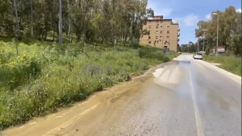 Nel frattempo, l’acqua – quella stessa risorsa che manca ai rubinetti dei cittadini – scorreva per le strade, disperdendosi tra le buche e le voragini aperte dal cedimento della sede stradale.