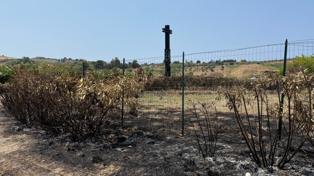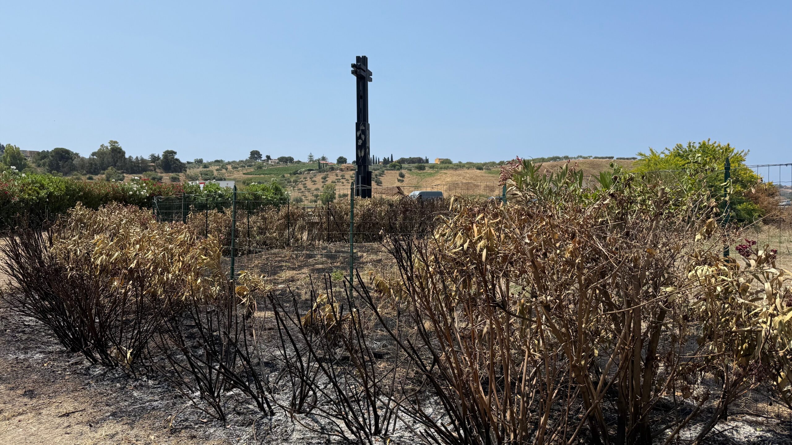 Un incendio ha devastato l’area attorno alla Croce eretta in memoria della visita di Papa Giovanni Paolo II ad Agrigento. Un simbolo lasciato nel degrado, oggi anche nella cenere.
