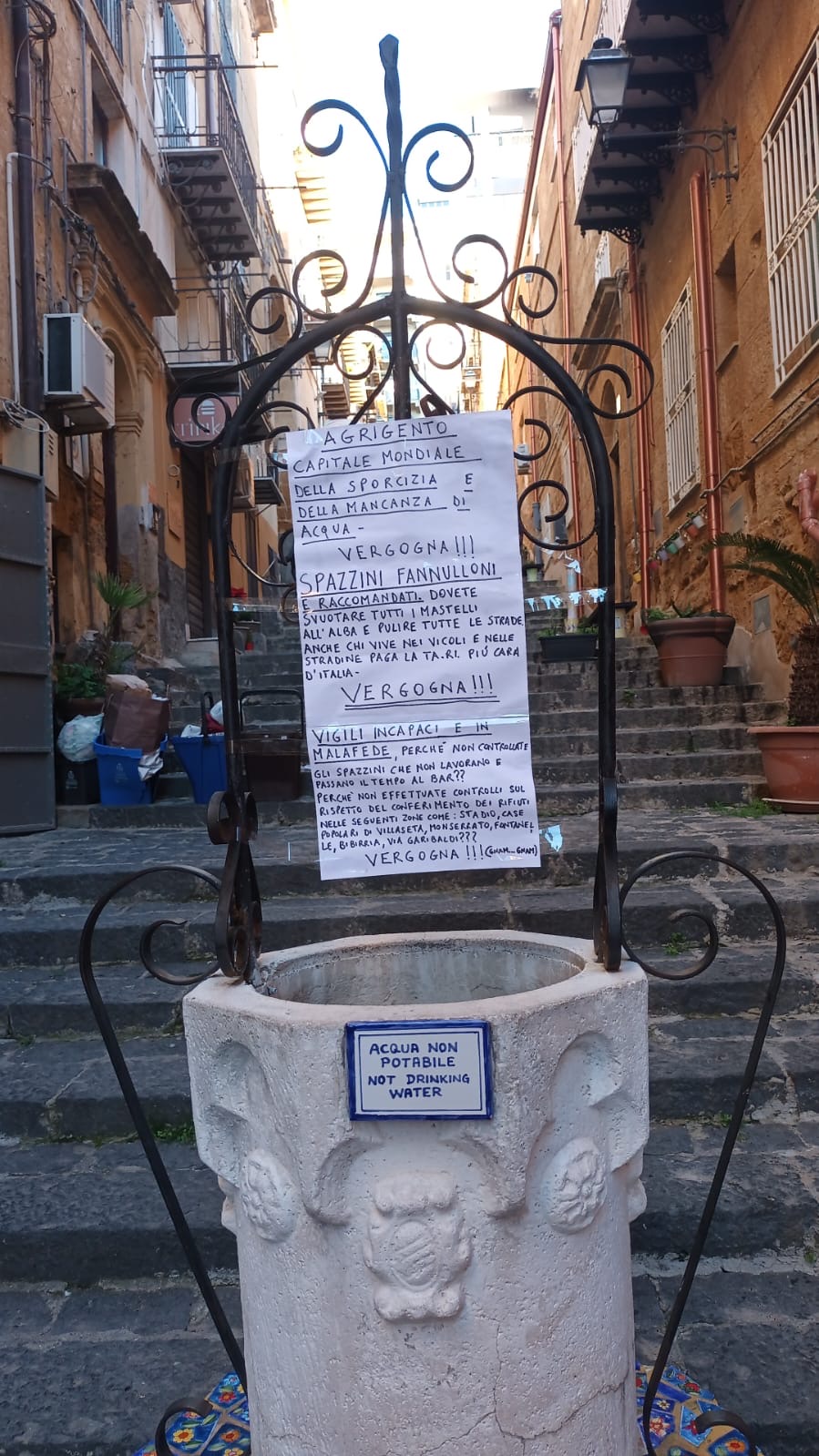La pazienza degli agrigentini sembra essere arrivata al limite. Questa mattina, i residenti della centralissima salita Madonna degli Angeli, una scalinata che si affaccia sulla prestigiosa via Atenea, hanno affisso un cartello di denuncia contro il degrado e la cattiva gestione della città, ormai sotto i riflettori per il titolo di Capitale Italiana della Cultura 2025.