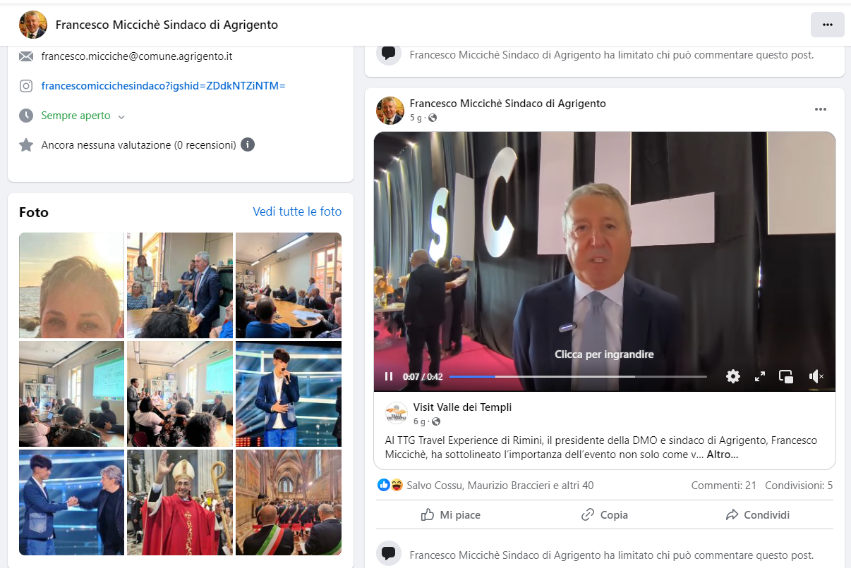 La città di Agrigento, destinata a essere la Capitale della Cultura 2025, sembra essere sempre più distante dal concetto di trasparenza e dialogo con i cittadini. Dopo una serie di eventi inquietanti che hanno travolto l’amministrazione comunale, il Sindaco Francesco Miccichè ha deciso di bloccare i commenti sulle sue pagine social, una mossa che sta facendo discutere e che lascia perplessi.
