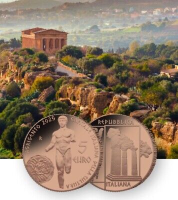 Agrigento, 2025. Un simbolo concreto per Agrigento Capitale Italiana della Cultura 2025: l’Istituto Poligrafico e Zecca dello Stato ha emesso una moneta commemorativa da 5 euro in rame, finitura Fior di Conio, dedicata alla città dei Templi.