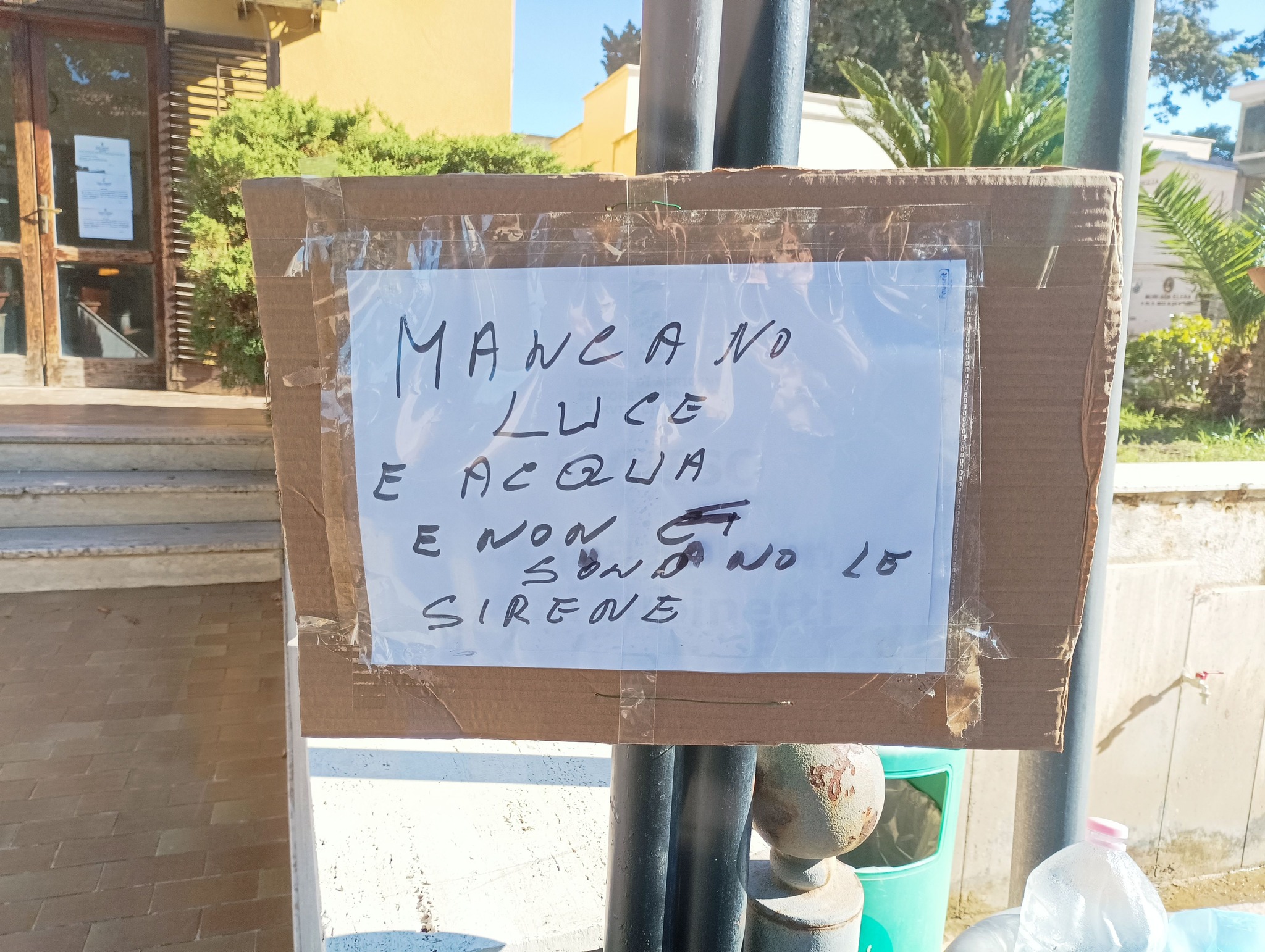 Un cartello affisso all’ingresso del cimitero denuncia la situazione: “Mancano luce e acqua e non suonano le sirene”. Queste parole, accompagnate da immagini che mostrano la struttura priva di manutenzione e senza risorse essenziali, raccontano di una gestione amministrativa che sembra completamente scollegata dai bisogni dei cittadini.