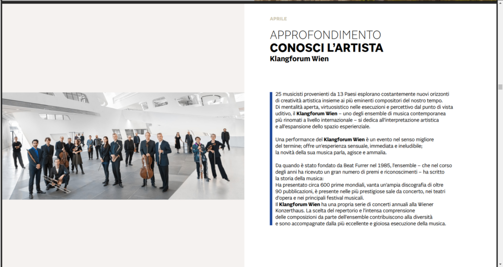 Sfogliando il programma degli eventi, si nota subito una predominanza di artisti provenienti dall’estero o comunque da altre parti d’Italia. Tra i nomi annunciati ci sono Tanja Boukal (Austria), Nathalie Harb (Francia-Libano), Klangforum Wien (Austria) ed Edoardo Malagigi (Italia, ma senza alcun legame con Agrigento). E gli artisti agrigentini? Semplicemente non pervenuti.