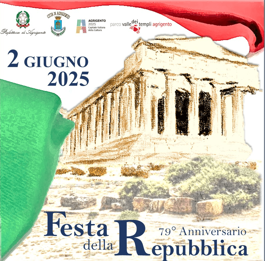 AGRIGENTO – Domani Lunedì 2 giugno 2025, Agrigento sarà protagonista di una delle celebrazioni più solenni della storia repubblicana: il 79° anniversario della Fondazione della Repubblica Italiana.