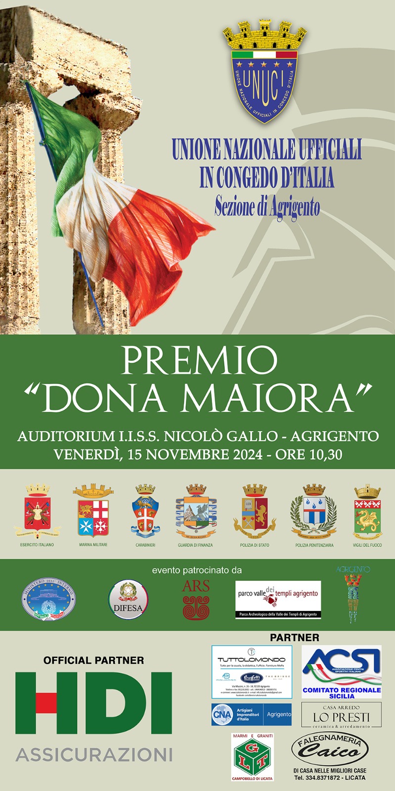 Agrigento – La città di Agrigento si prepara a rendere omaggio a uomini e donne che, con coraggio e dedizione, lavorano quotidianamente per la sicurezza e il benessere della comunità. Venerdì 15 novembre, alle ore 10:30, presso l’auditorium dell’Istituto “Nicolò Gallo” di contrada Carcarelle, si terrà la cerimonia di premiazione della terza edizione del Premio “Dona Maiora”. L’iniziativa è stata presentata ufficialmente a Casa Sanfilippo, sede del Parco Archeologico della Valle dei Templi, in una conferenza che ha illustrato il significato e il valore di questo riconoscimento, nato nel 2022 su iniziativa della sezione agrigentina dell’UNUCI (Unione Nazionale Ufficiali in Congedo d’Italia).