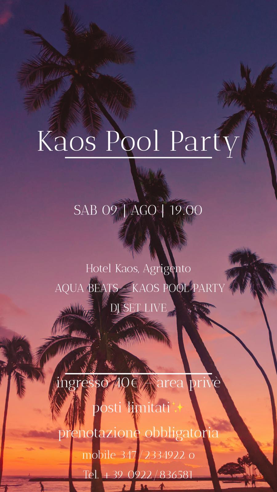 Una notte di musica, atmosfera tropicale e divertimento esclusivo: sabato 9 agosto, a partire dalle 19:00, l’Hotel Kaos di Agrigento apre le porte al pubblico per uno degli eventi più attesi dell’estate 2025: il Kaos Pool Party – Aqua Beats.
