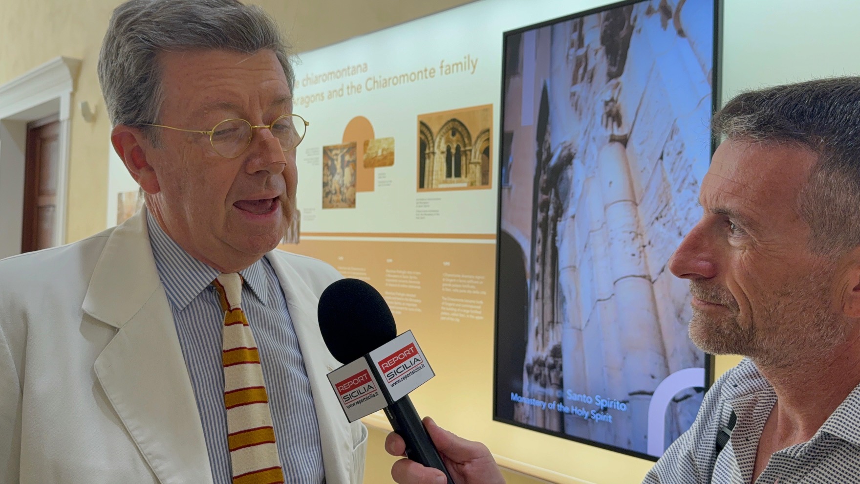 È il giornalista Francesco Di Mare ad aprire il nostro servizio, direttamente dalla sala del Palazzo dei Filippini, dove oggi è stata inaugurata una nuova mostra multimediale che racconta la storia millenaria di Agrigento in modo immersivo e innovativo.