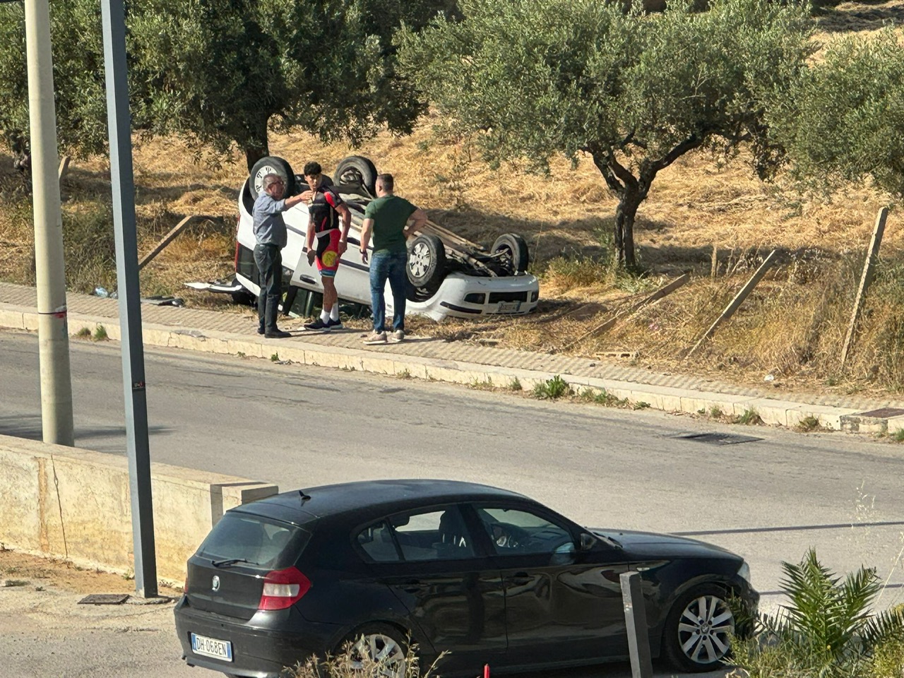 AGRIGENTO – Ancora una volta le strade dissestate e trascurate di Agrigento diventano scenario di un incidente stradale. Questa mattina, lungo l’arteria di via Cavaleri Magazzeni, nei pressi dello svincolo per via dei Fiumi, una Fiat Panda bianca si è ribaltata finendo fuori strada in un campo.