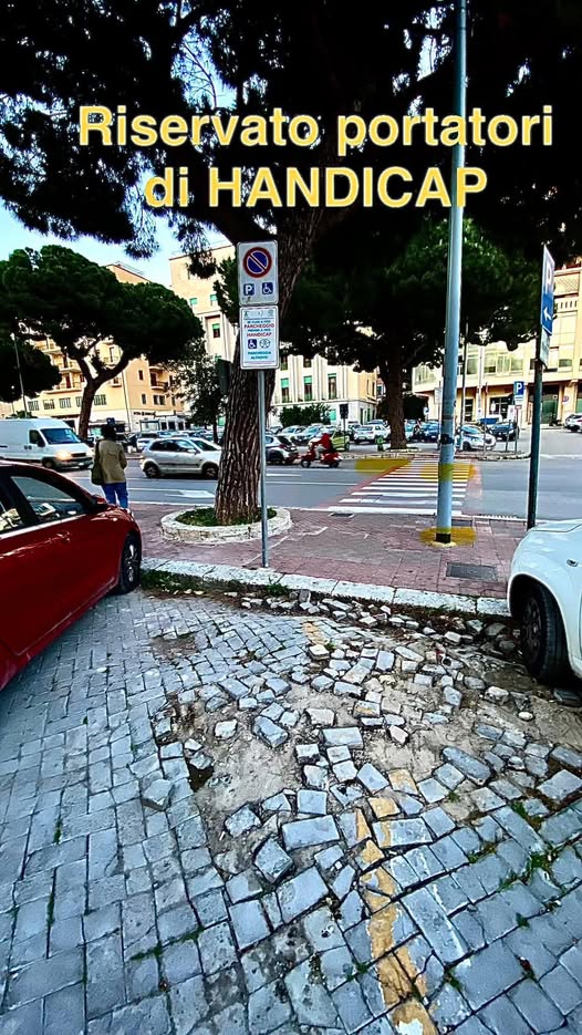 In pieno centro città, in un’area di sosta riservata ai portatori di handicap, si presenta una scena indegna: pavimentazione divelta, basolato sconnesso, buche, sabbia e pietre ovunque. Una trappola urbana, pericolosa e offensiva, proprio per chi avrebbe diritto ad accessibilità e sicurezza.