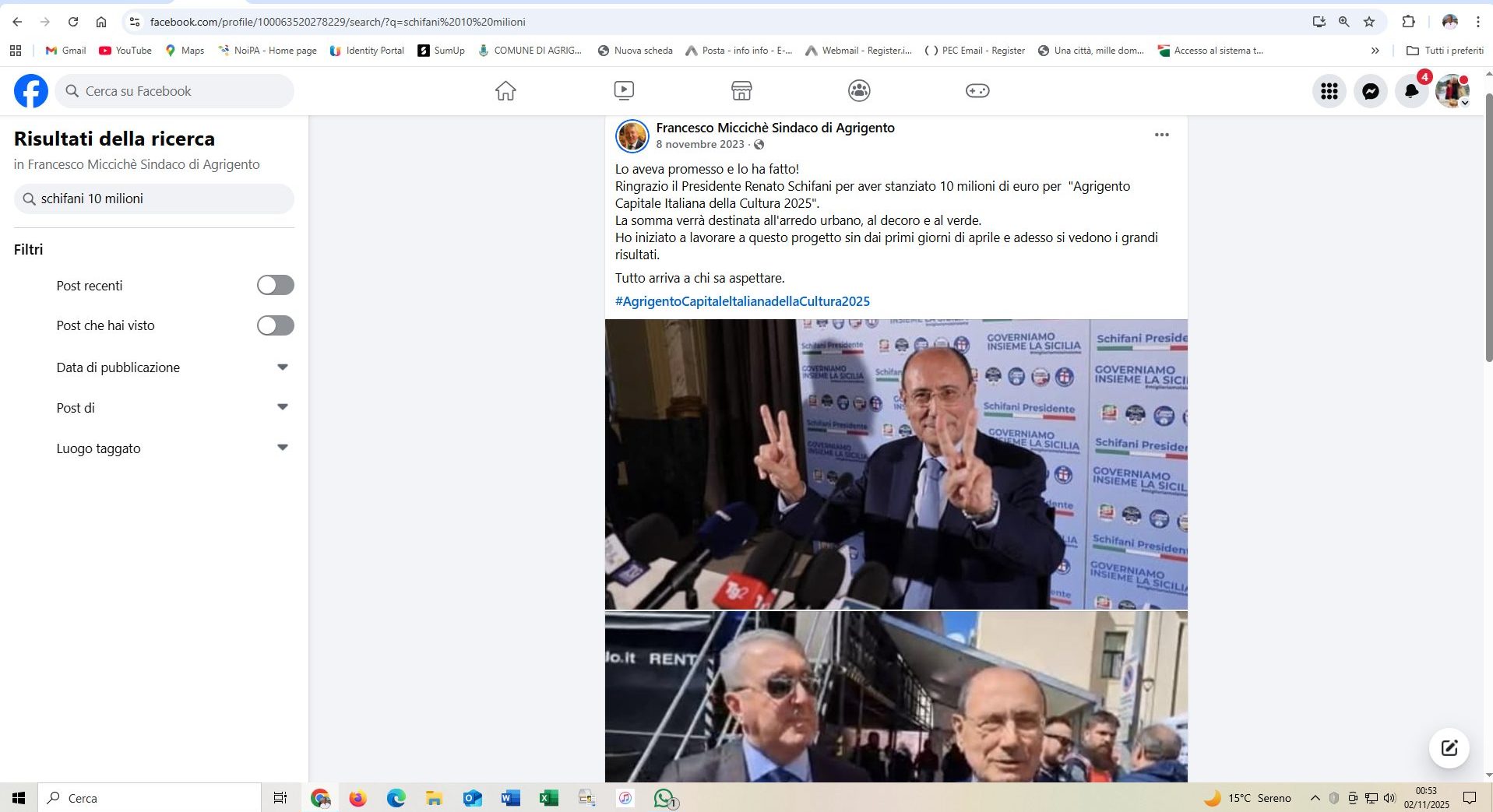 Così scriveva l’8 novembre 2023 il Sindaco di Agrigento Francesco Miccichè, pubblicando sui social un post trionfante in cui ringraziava il Presidente della Regione Renato Schifani per il presunto arrivo di 10 milioni di euro destinati ad “Agrigento Capitale Italiana della Cultura 2025”.