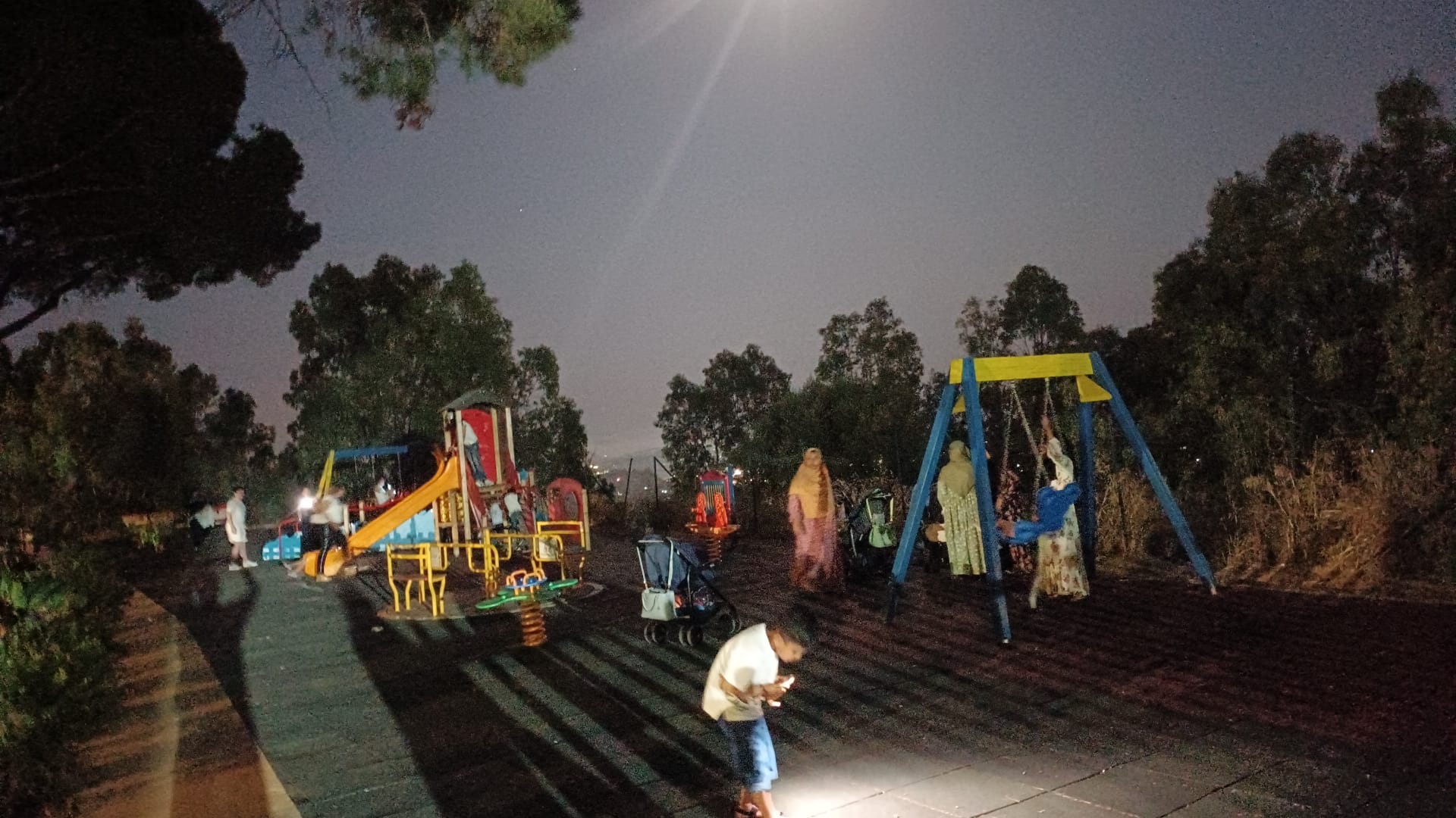 Le foto parlano chiaro: decine di famiglie costrette a creare da sé un minimo di sicurezza e visibilità. Alcuni bambini giocano con il cellulare in mano per vedere dove mettono i piedi, altri sono spinti sulle altalene da madri e padri che usano la luce del proprio smartphone per evitare pericoli. Un paradosso che dovrebbe far vergognare un’intera amministrazione comunale.