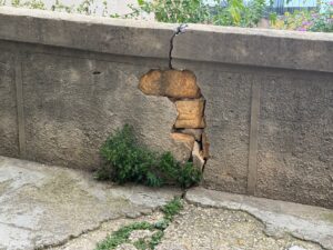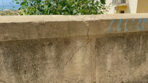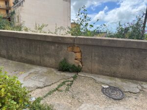 Il muro di sostegno sottostante le abitazioni presenta lesioni strutturali evidenti che fanno temere un nuovo caso simile a quello di via Acrone. L’acqua che fuoriesce in modo continuo sta scavando lentamente ma inesorabilmente nella stabilità del terreno e delle infrastrutture.